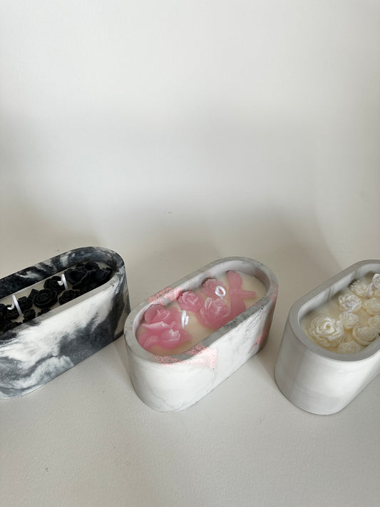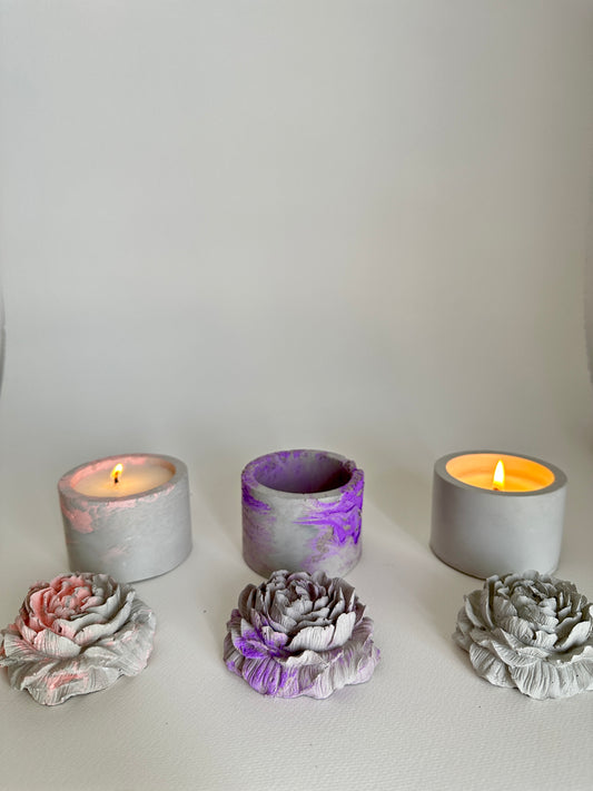 Cement Candle Flower Style - Handmade